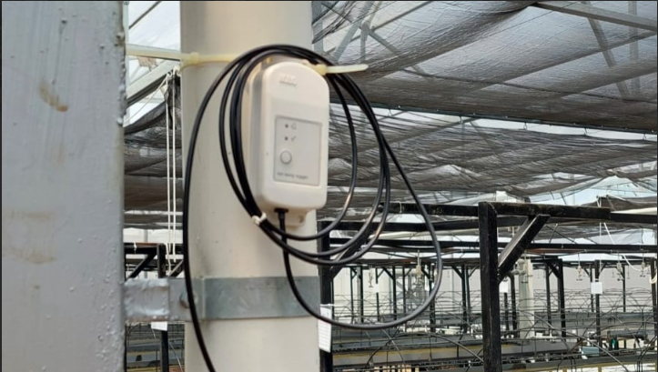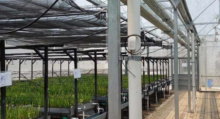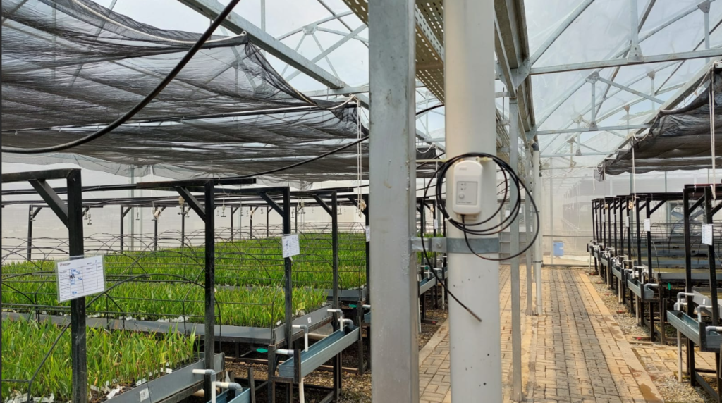 Tim Taharica melakukan instalasi data logger suhu dan kelembaban di SMART Greenhouse, tempat pembibitan Sawit