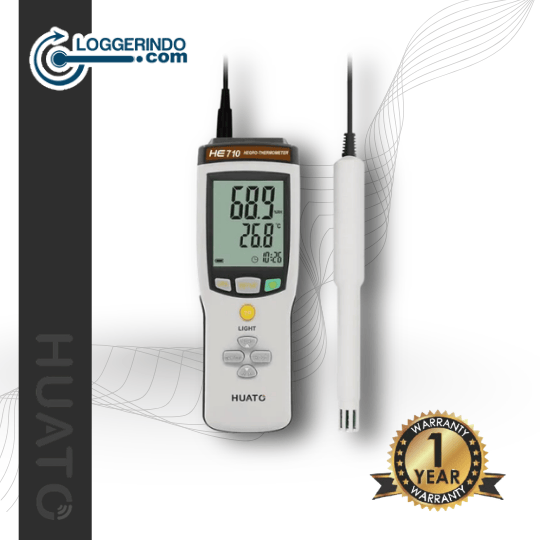 Termometer dan higrometer genggam seri HUATO HE710 adalah alat pengukur suhu dan kelembapan yang cepat, andal, dan sangat akurat. Alat ini dilengkapi dengan layar LCD besar dan desain yang elegan. Semua alat seri HE telah dikalibrasi menggunakan kalibrator termokopel FLUKE. Pelanggan dapat memilih berbagai opsi sesuai kebutuhan mereka. Alat genggam ini dirancang untuk pengukuran di lingkungan dengan perubahan posisi, model sensor eksternal dilengkapi kabel standar sepanjang 1,5 meter, cocok untuk penggunaan ergonomis, bertenaga baterai, dan portabel. Model internal juga dapat mengukur titik embun dan suhu basah.